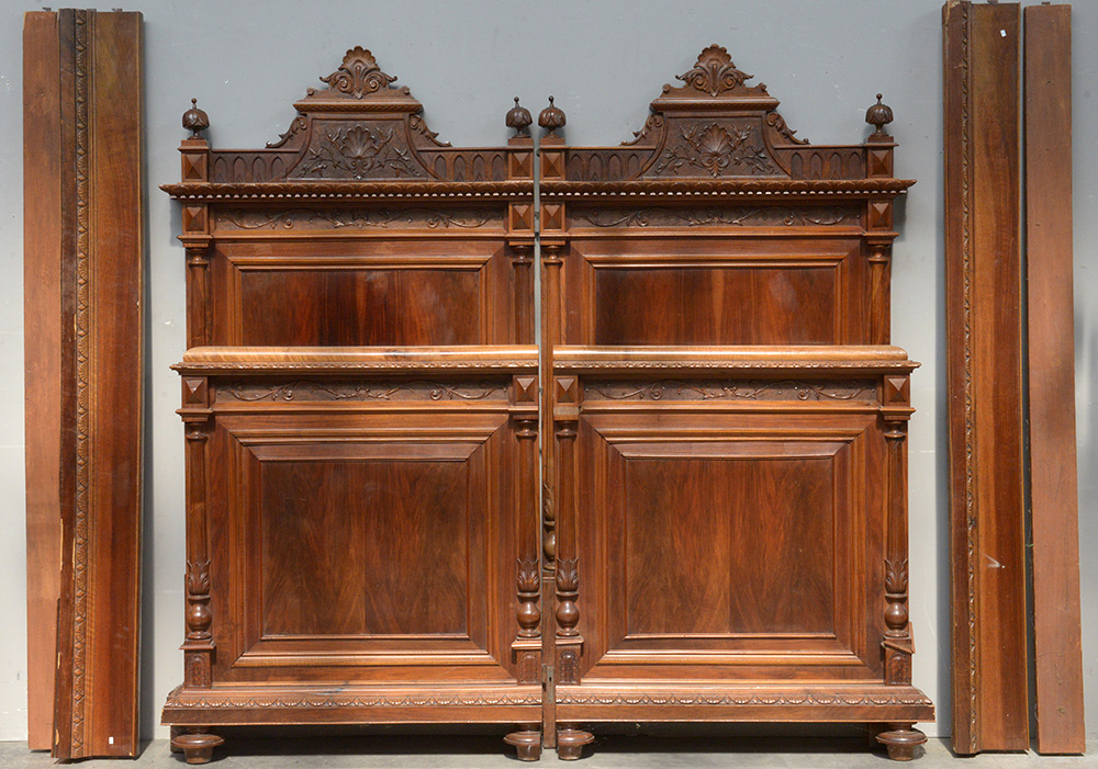 Letto matrimoniale di struttura architettonica composto da due letti singoli uniti, completo di sponde (cm 200x190x216) (difetti)