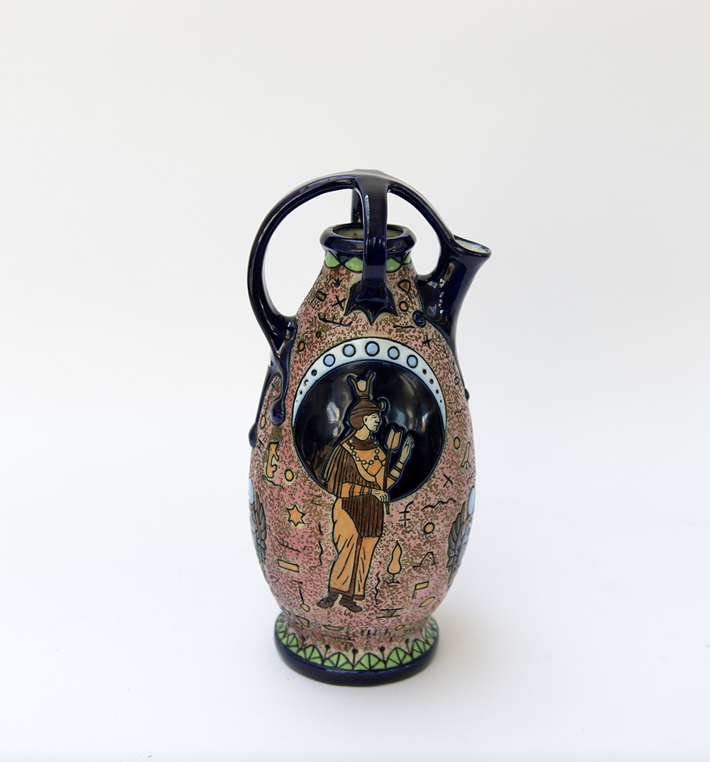 Lotto composto da un gruppo di dieci piatti e uno da otto decorati a soggetto ornitologico, e una brocca in ceramica policroma a decoro graffito. Manifatture differenti (difetti)