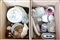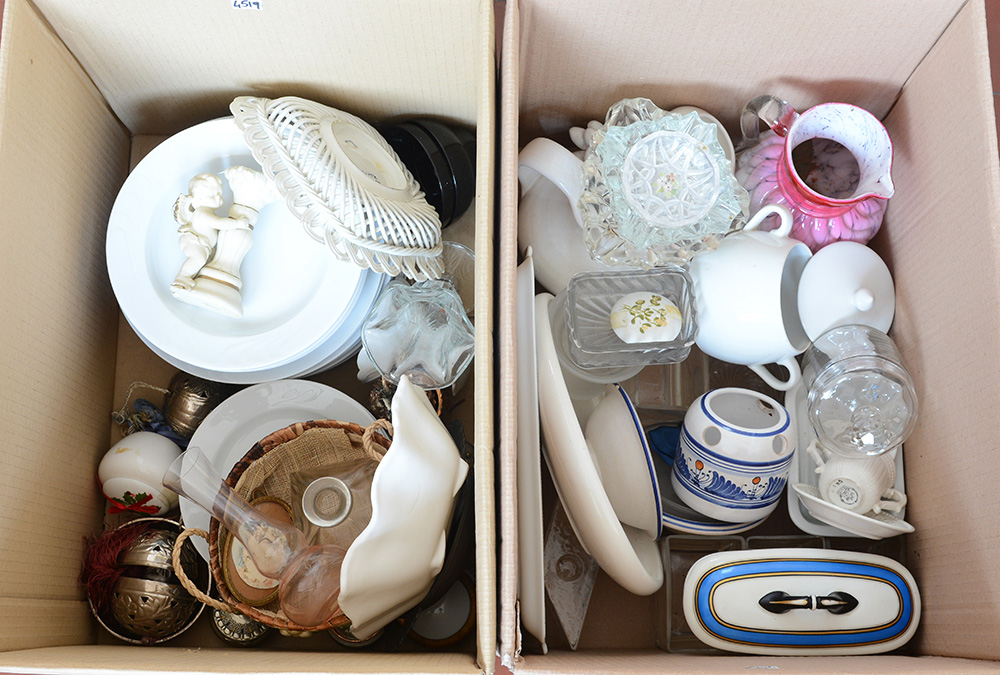 Lotto di due cartoni contenenti numerosi oggetti per uso differente (difetti)