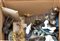 Cartone contenente numerose sculture in materiali diversi raffiguranti cani e animali (difetti)