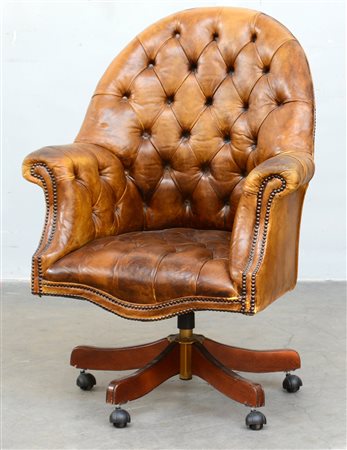 Poltrona girevole da scrivania in pelle capitonnè e profili borchiati (difetti)