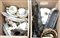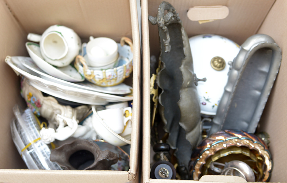 Due cartoni contenenti diversi oggetti in metallo e ceramica (difetti)
