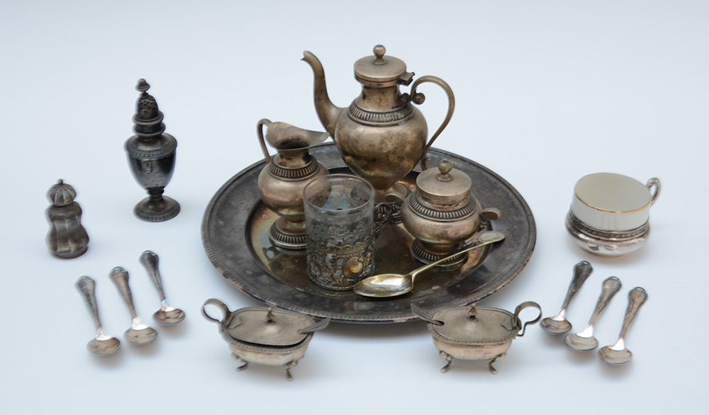 Cartone contenente diversi oggetti in argento (gr. lordi 1170) (difetti)