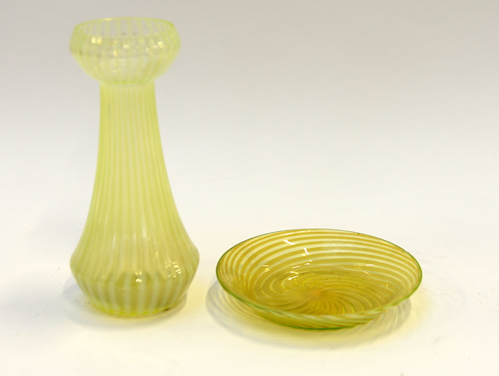 Lotto composto da una scatola in vetro maser e un vaso con piattino in vetro (difetti)