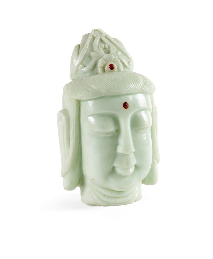 Testa di bodysatwa, Oriente, XIX secolo, in giada-giadeite