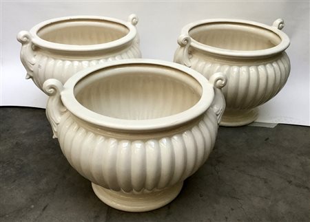 Gruppo di tre cachepot biansati in ceramica bianca (difetti)