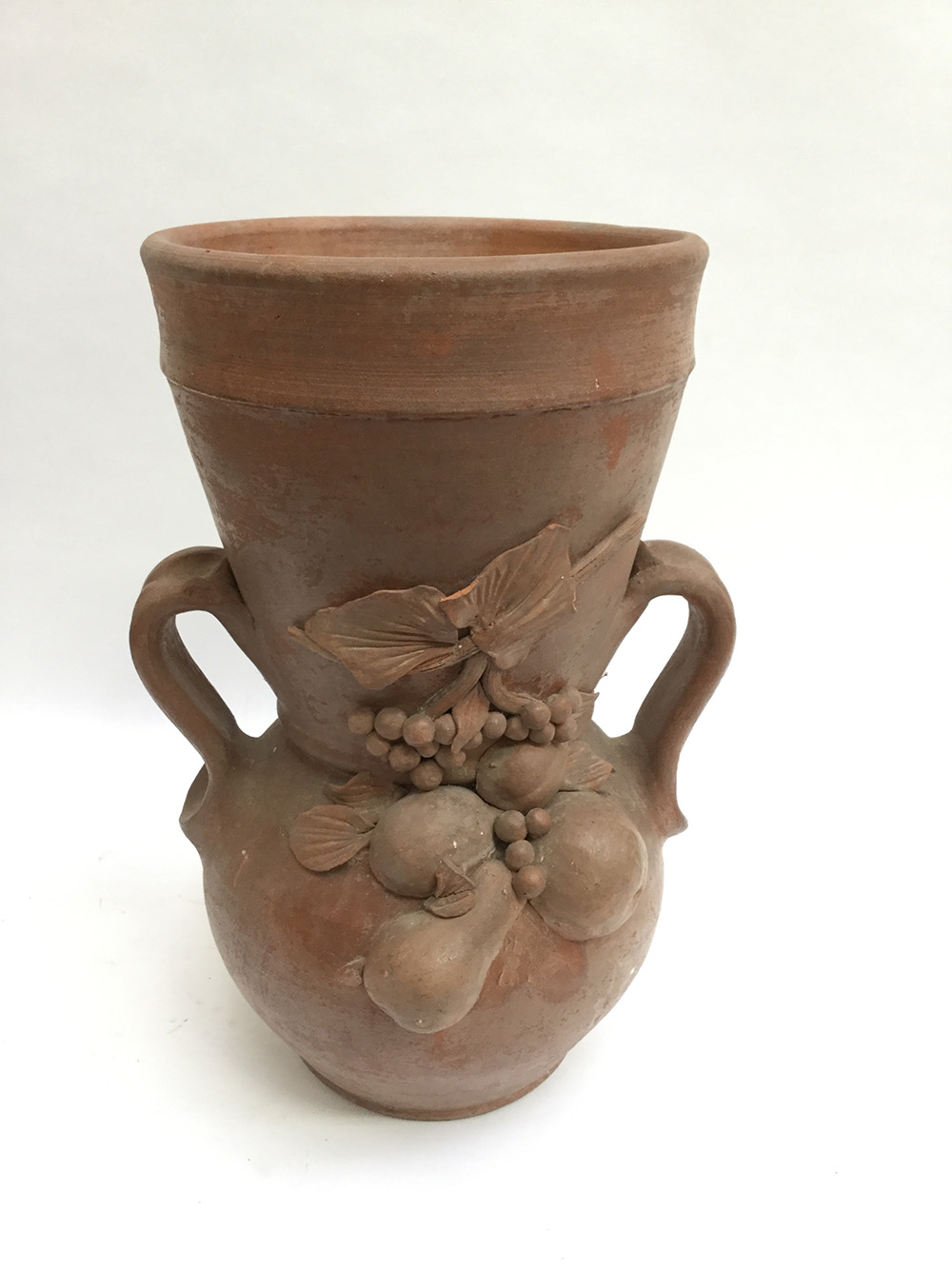 Vaso in terracotta decorato con frutti in altorilievo(difetti)