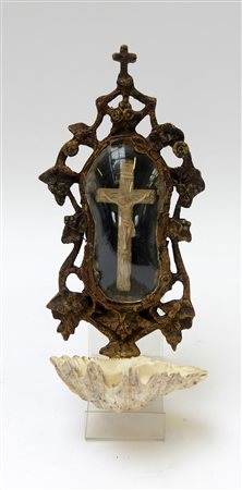Arte del secolo XIX. Acquasantiera con Cristo crocifisso e valva di...