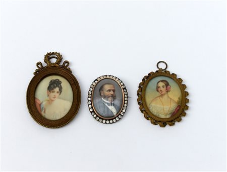 Lotto composto da tre miniature raffiguranti gentiluomo e gentildonne, in...