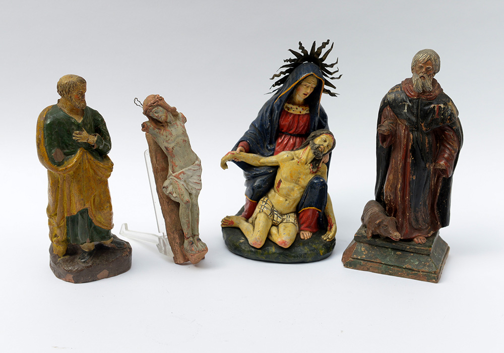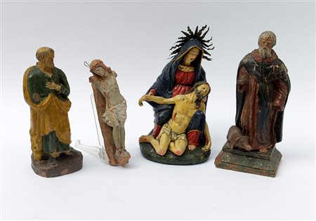 Lotto composto da quattro sculture in terracotta policroma di diversa epoca (difetti e mancanze)