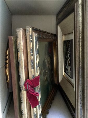 Cartone contenente numerose riproduzioni di soggetto e dimensioni differenti, in cornici (lievi difetti)