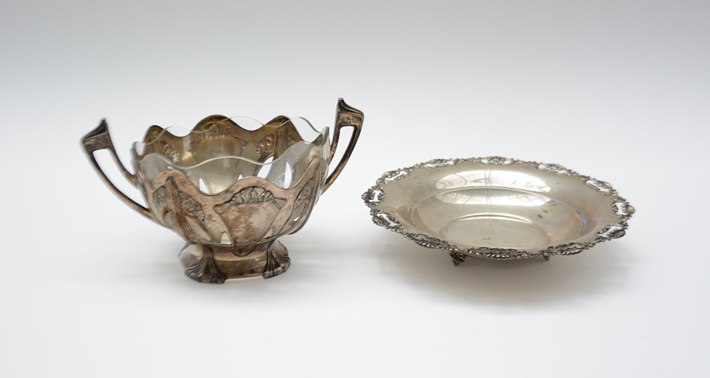 Lotto 4722 | Lotto composto da due alzate in argento, una con vaschetta in vetro (gr. 520)...