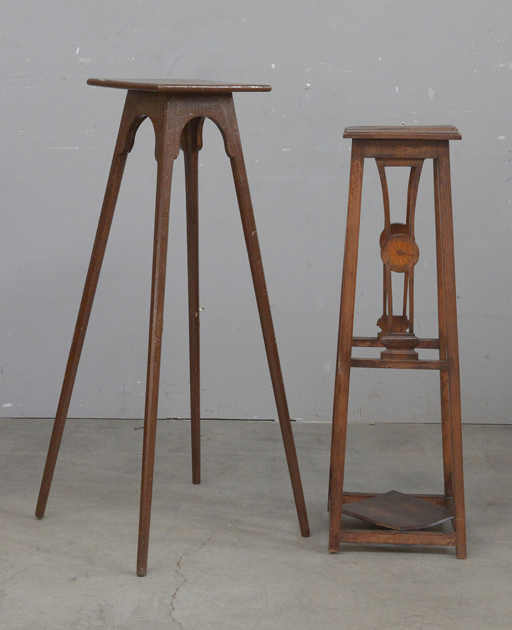 Lotto di due portavasi in legno dolce di differenti fatture (h max cm 102) (difetti)