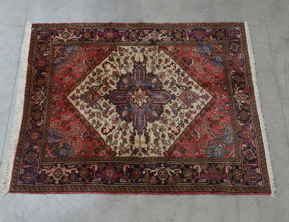 Tappeto Heritz, Persia sec. XX Disegno a medaglione su fondo bianco (cm 190x150) (difetti)