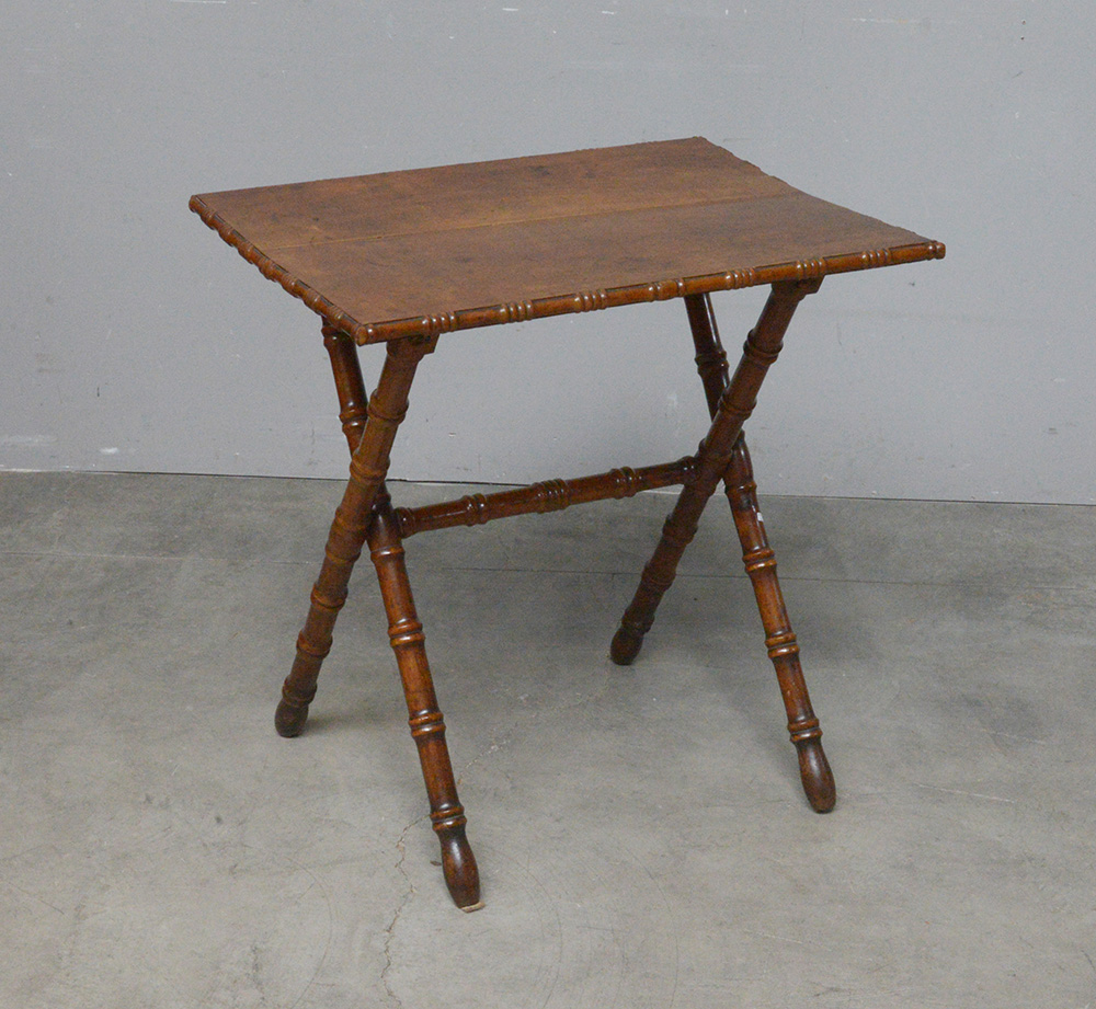 Tavolino rettangolare con gambe tornite e incrociate (cm 71x73x55) (difetti)