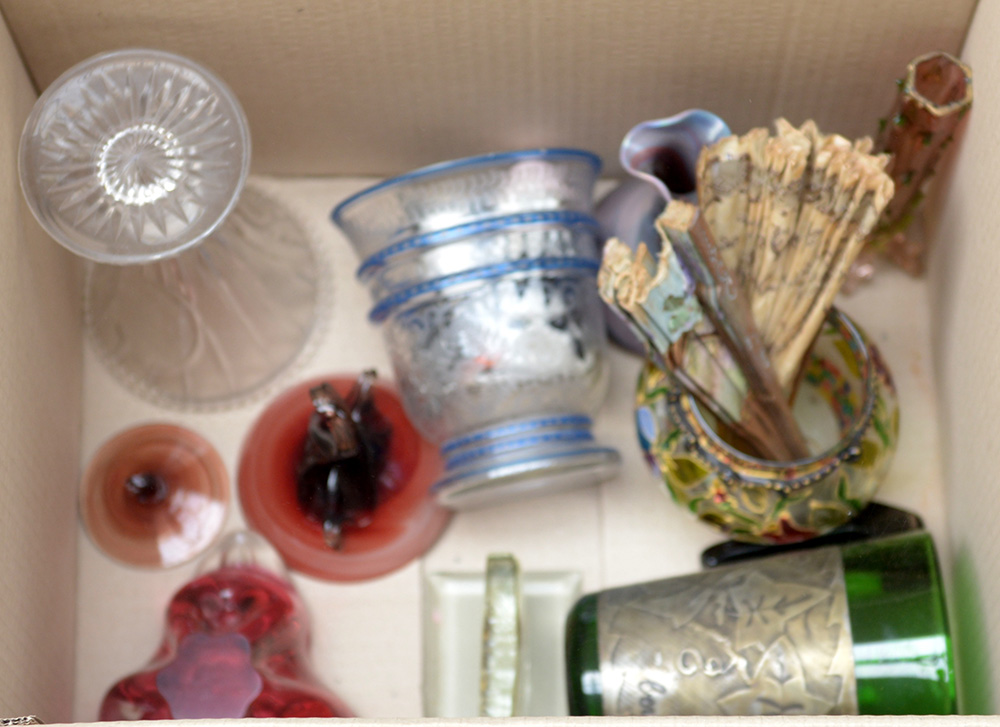 Cartone contenente numerosi oggetti in vetro e ceramica (difetti)