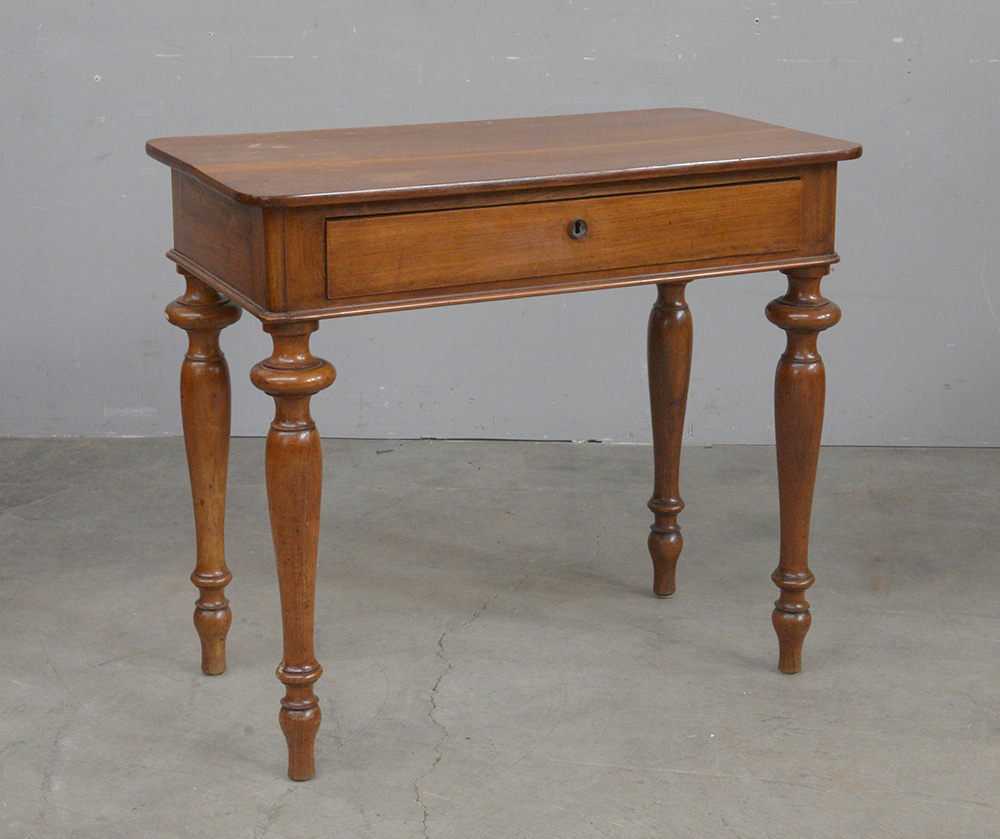 Piccolo scrittoio in noce con cassetto nella fascia e gambe tornite a...