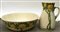 Manifattura Sarreguemines, catino con brocca per l'acqua in ceramica decorata...
