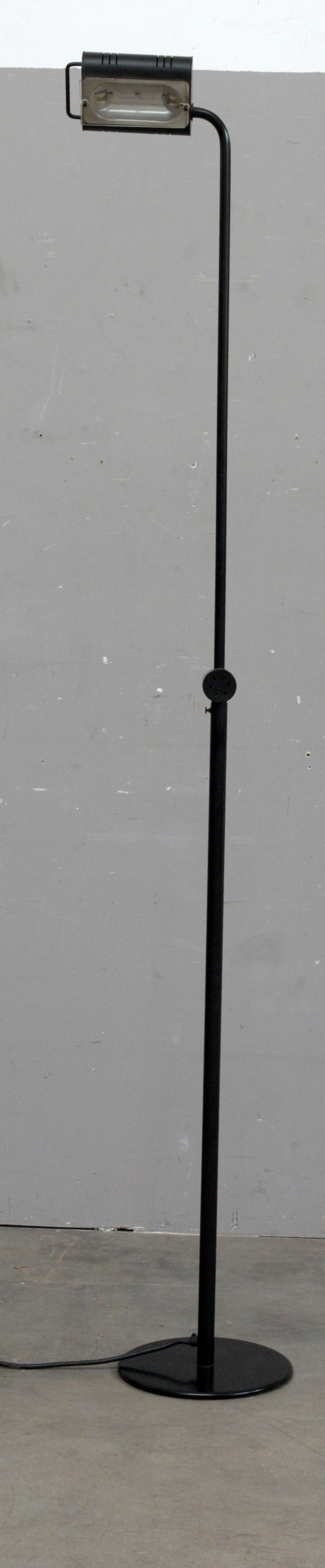 Lampada da terra in metallo smaltato nero con luce alogena. Italia, anni '90....