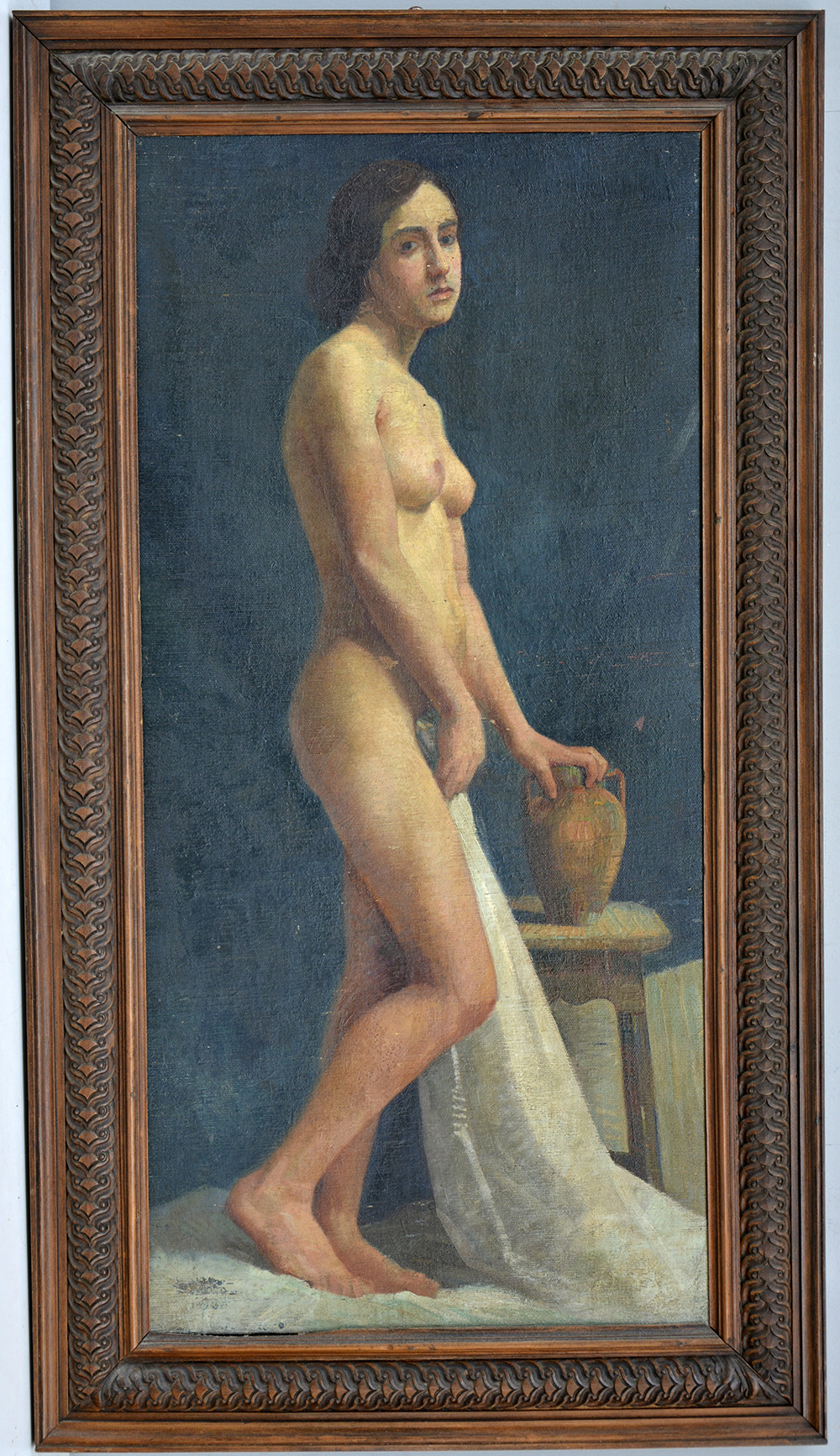 Firma indecifrata, "Nudo femminile" olio su tela (cm 93x45) firmato e datato 1928 in basso a sinistra, in cornice (difetti e restauri)