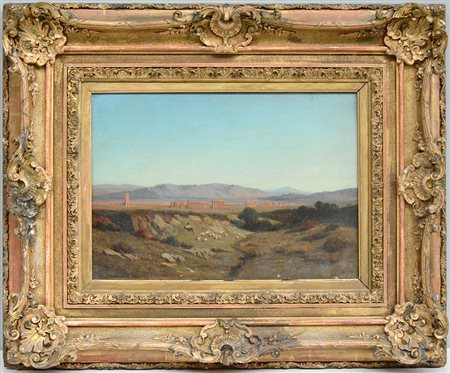 Artista del secolo XIX, "Campagna romana" olio su tela (cm 32,5x48,5) firmato...
