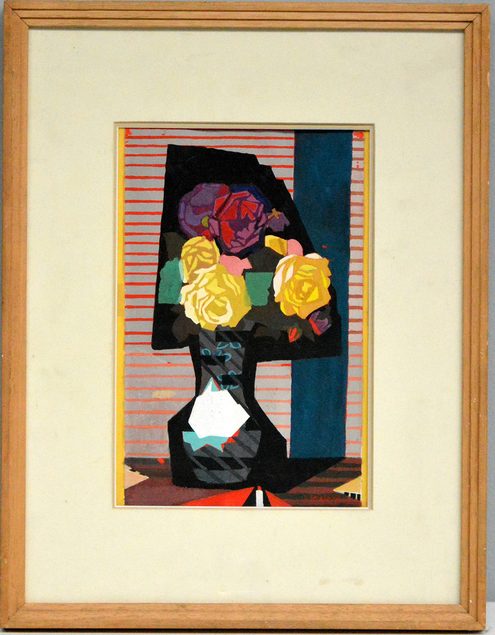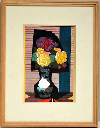 Ignoto "Vaso di fiori" 1970, acrilico su carta (cm 30x20) firmato R. Chiesa e datato in basso a destra, in cornice (difetti)