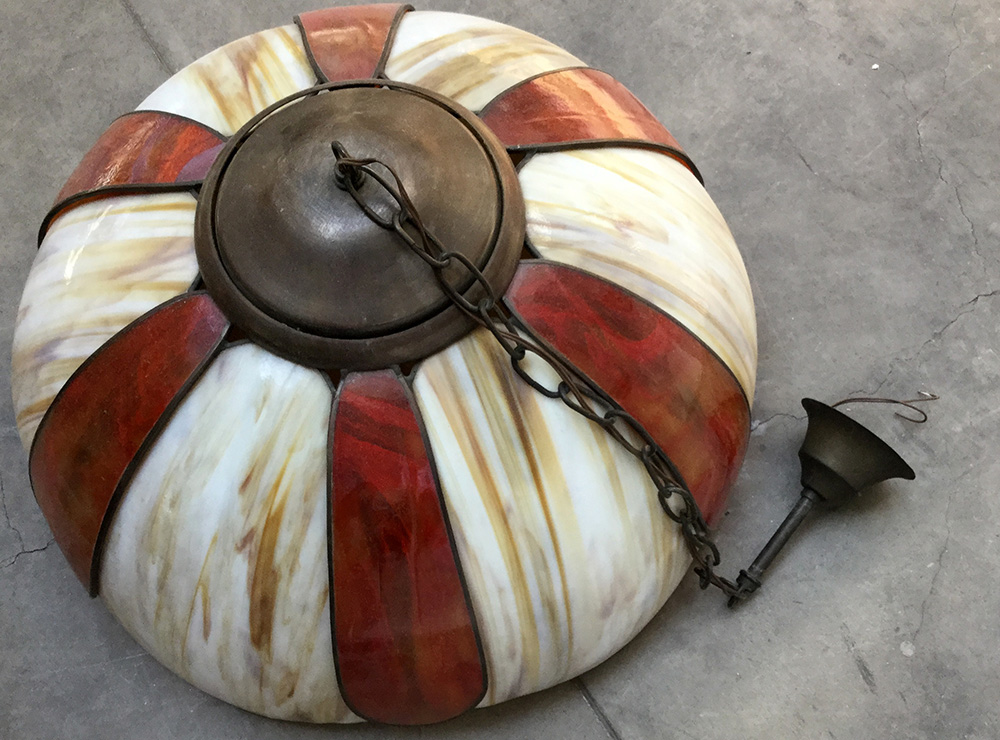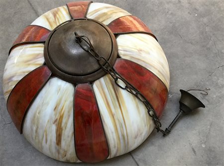 Lampadario a una luce con paralume in vetro colorato montato a piombo (d cm 51)