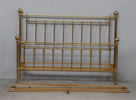 Letto a due piazze con struttura in ottone a ringhiera (difetti)