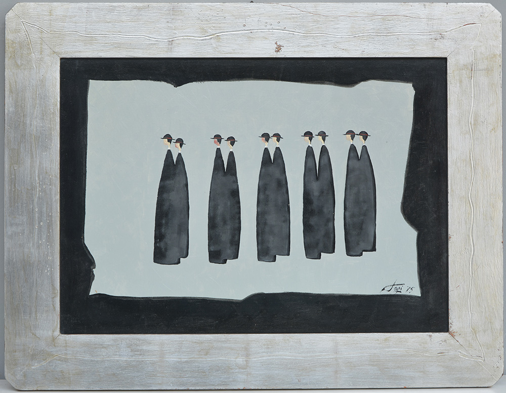 Giorgio Pagi (1912) "Pretini" acrilico su tela (cm 50x70) firmato e datato 1975 in basso a destra, in cornice (lievi difetti)