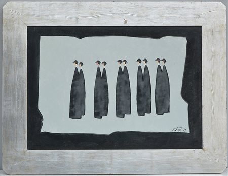 Giorgio Pagi (1912) "Pretini" acrilico su tela (cm 50x70) firmato e datato...