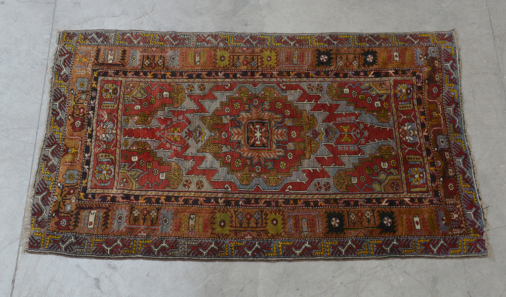 Tappeto Anatolia inizio sec. XX Disegno a medaglione su fondo rosso (cm 194x180) (difetti)