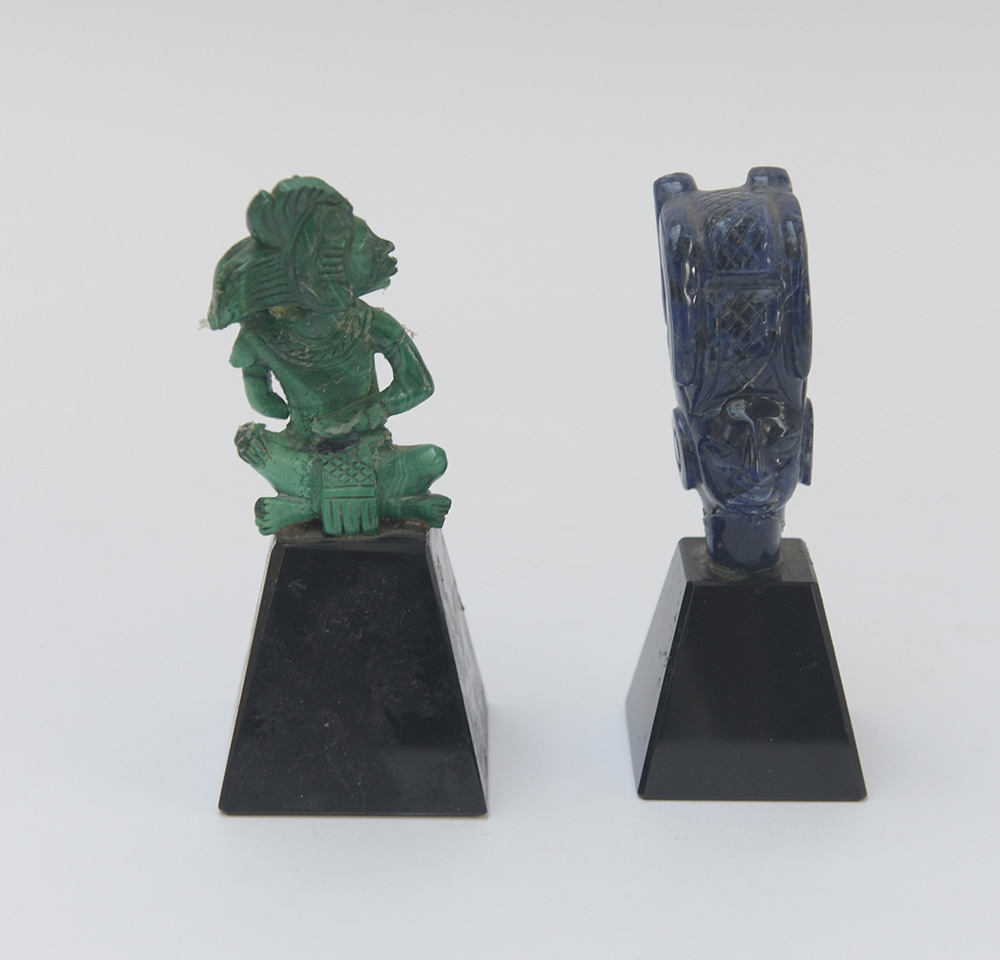 Lotto di due sculture in pietra dura in stile precolombiano, con base...