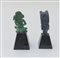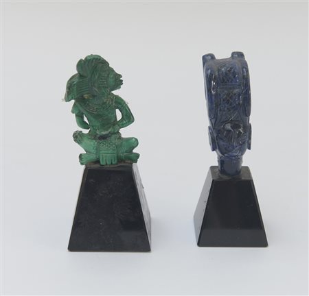Lotto di due sculture in pietra dura in stile precolombiano, con base (difetti e mancanze) (h. max 8,5 cm.)