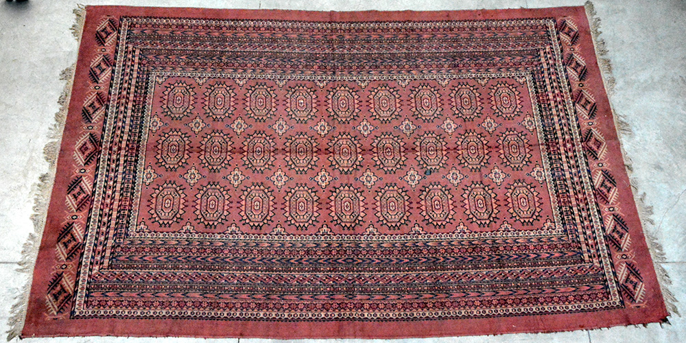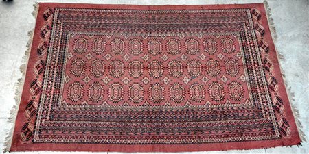 Tappeto meccanico, sec. XX Disegno Bohukara nei toni del rosa (cm 302x197) (difetti e rotture)