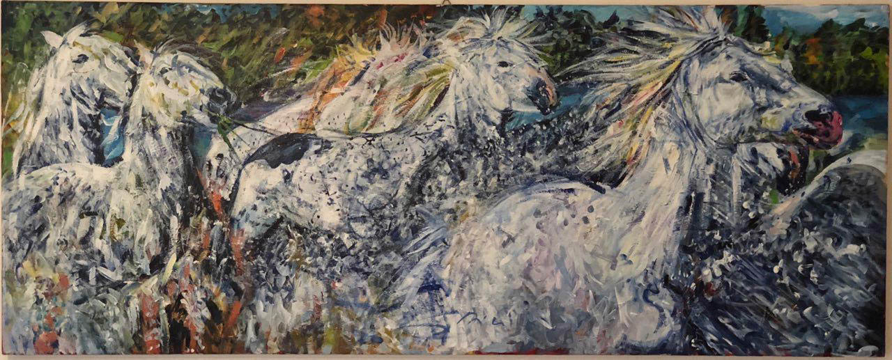 GIUSEPPE DE VITA Cavalli bianchi Tecnica mista su tela cm 160x50