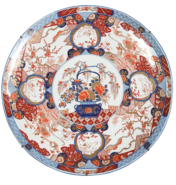 Grande piatto giapponese, manifattura Imari, fine XIX secolo, in porcellana decorata in policromia,