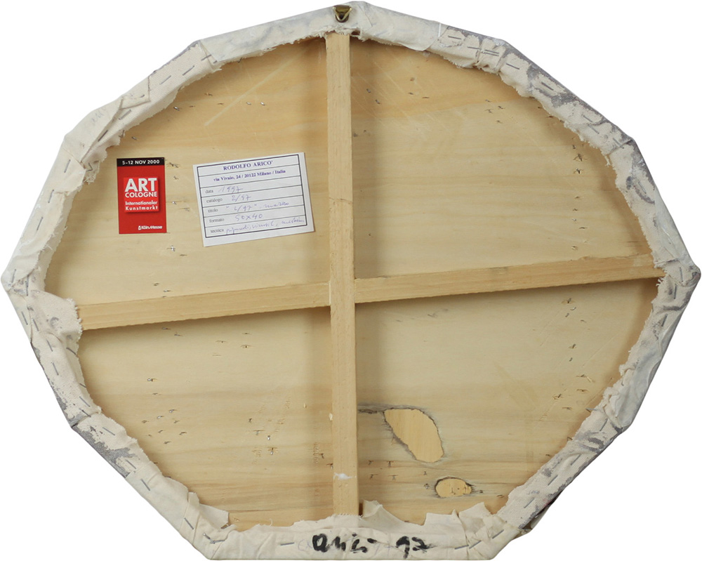 ARICO' RODOLFO (MILANO 1930 MILANO 2002), Senza titolo, Tecnica mista su tela Anno 1997 Dim. 40x50 Autentica su foto dell'Artista Al verso etichetta Art Cologne Al verso firma e data