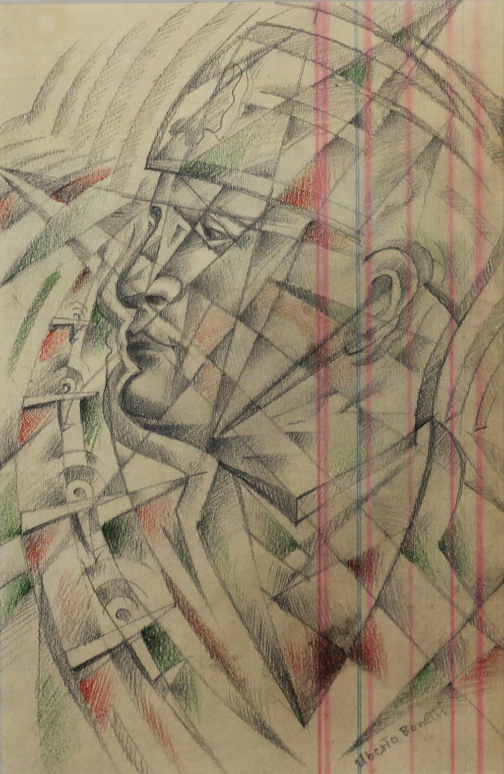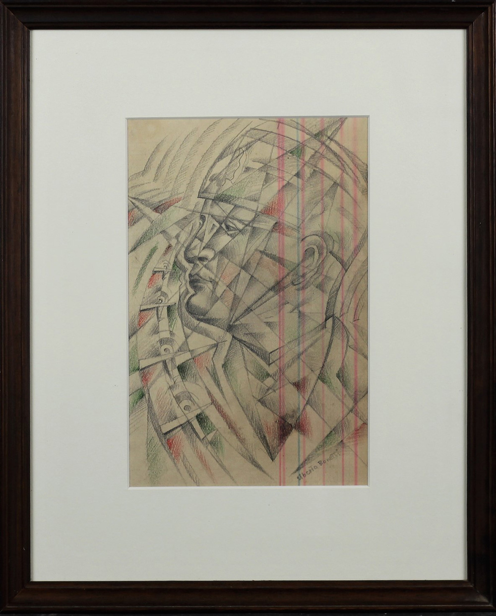 BONETTI UBERTO (VIAREGGIO 1909 VIAREGGIO 1993), Ritratto sintetico del Duce, Tecnica mista su carta Anni 40 Dim.24,7x15,5 Opera archiviata presso l'Archivio Adriana Bonetti N.408B15 Firmato in basso a dx