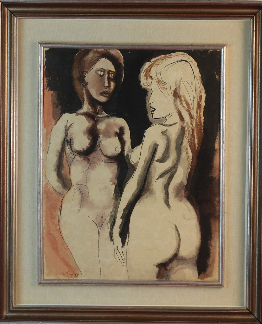GUTTUSO RENATO (BAGHERIA 1911 ROMA 1987), Due figure femminili, Tempera e china su carta reintelata 1968 dim. 39X51 Firmato e datata in basso a sx