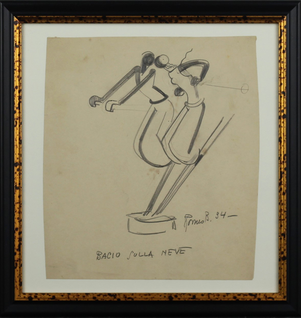 BEVILACQUA ROMEO (FIRENZE 1908 SAVONA 1958), Bacio sulla neve, Matita grassa su carta Anno 1937 Dim. 22x20 Titolo in basso al centro Datato e firmato in basso a dx