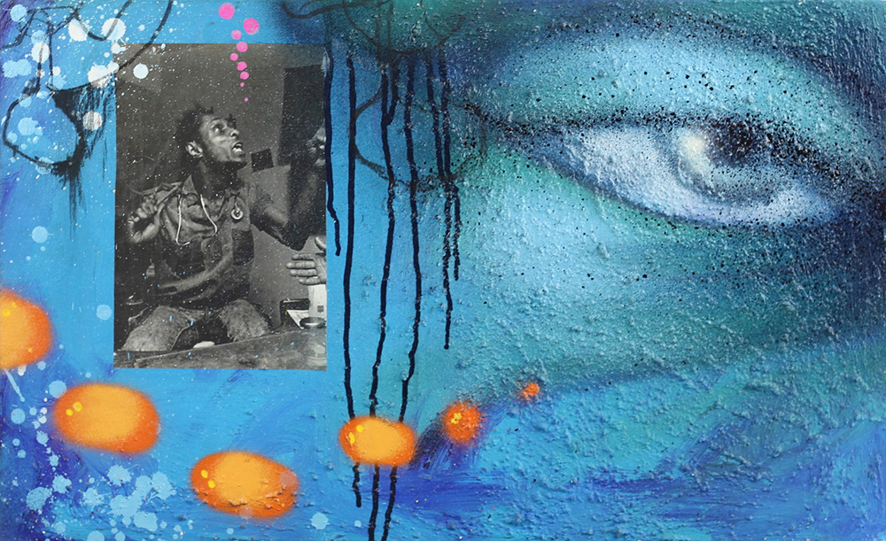 CHRIS ELLIS DAZE (NEW YORK 1962), Crackhead mentality, Tecnica mista e collage su tela Anno 2007 Dim. 40,5x66 Opera senza cornice Al verso titolo, anno e firma