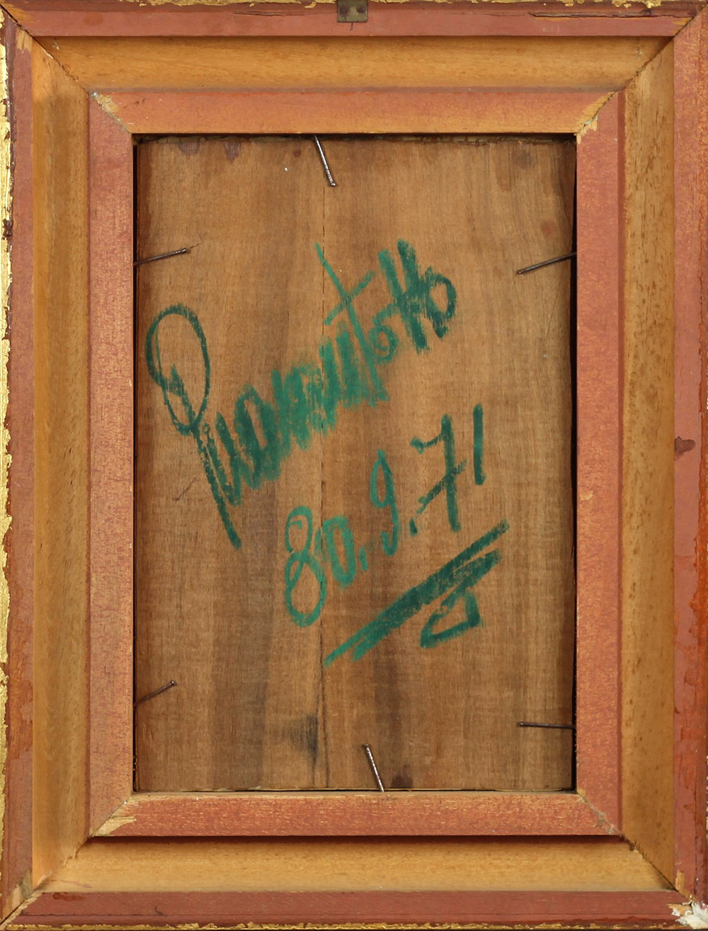 ANONIMO, Senza titolo, Olio su tavola Anno 1971 Dim. 28x18 Datato e firmato al verso