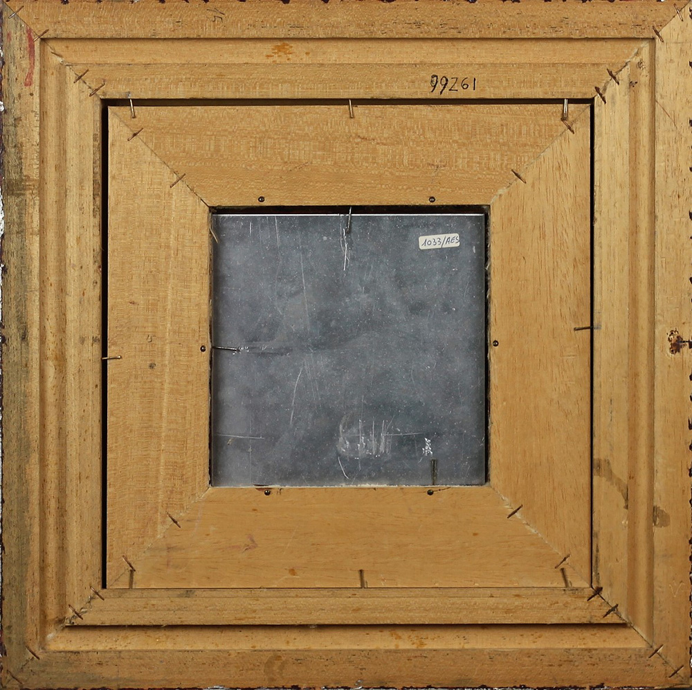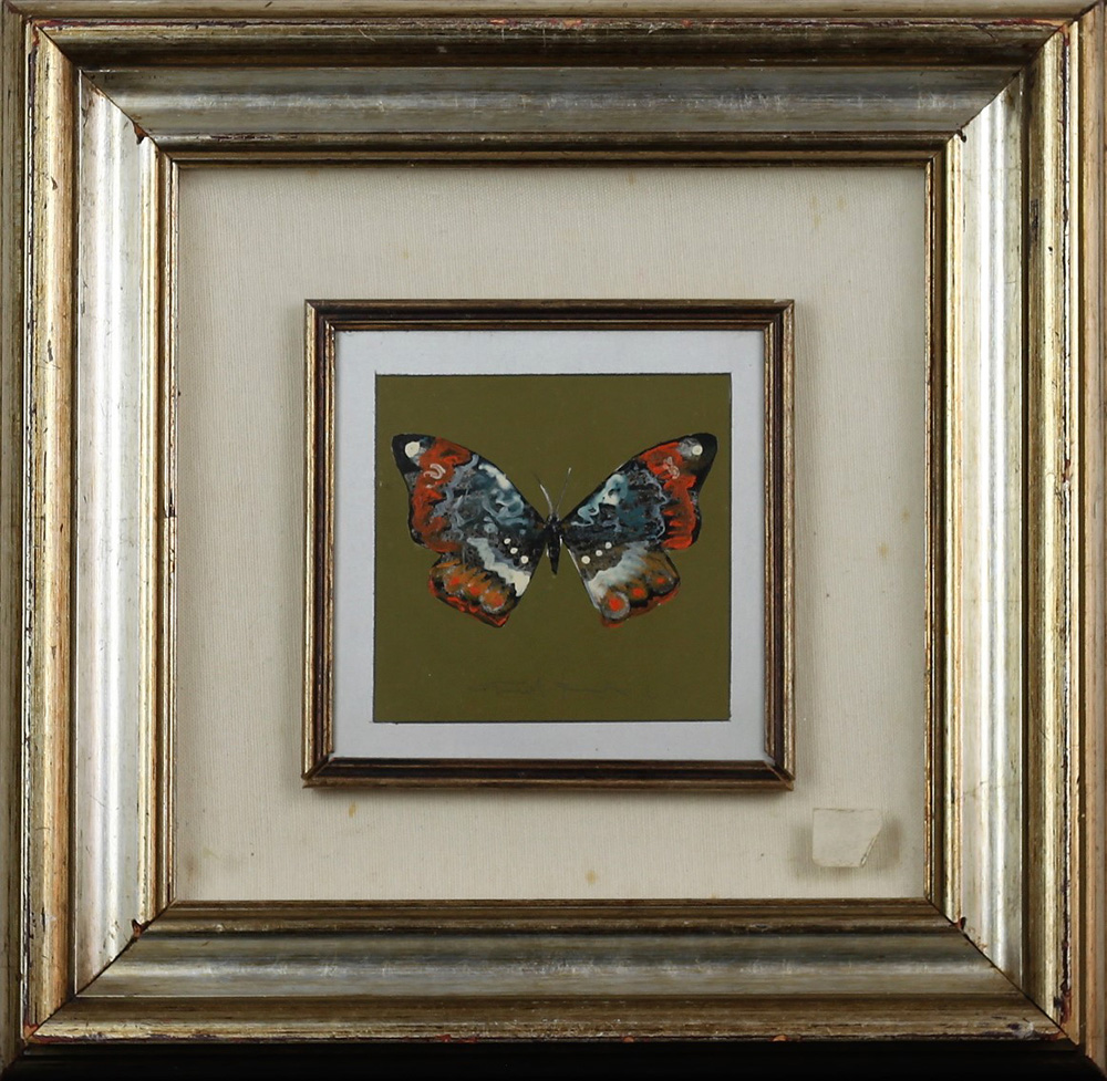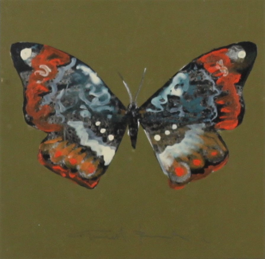BIANCHI G., Farfalla, Olio su metallo Anni 80 Dim. 15x15 Firmato in basso al centro