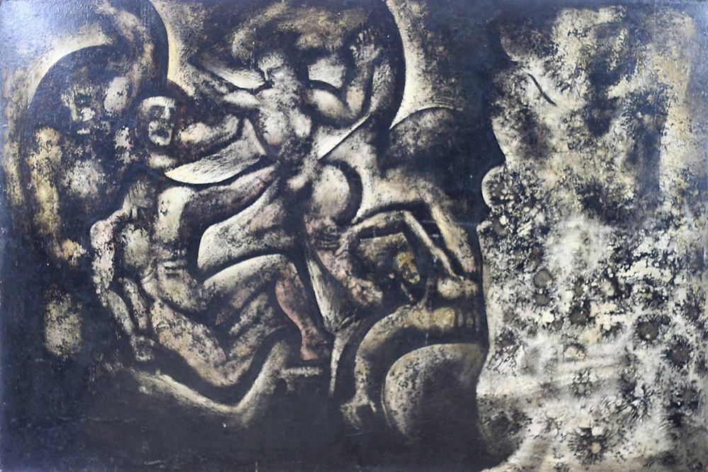 CANNATA ANTONIO (ROMA 1895 ROMA 1960), Conflitto, Tecnica mista su tela Anno 1964 Dim. 82x122 Opera senza cornice Firmato e datato in basso centro/sx