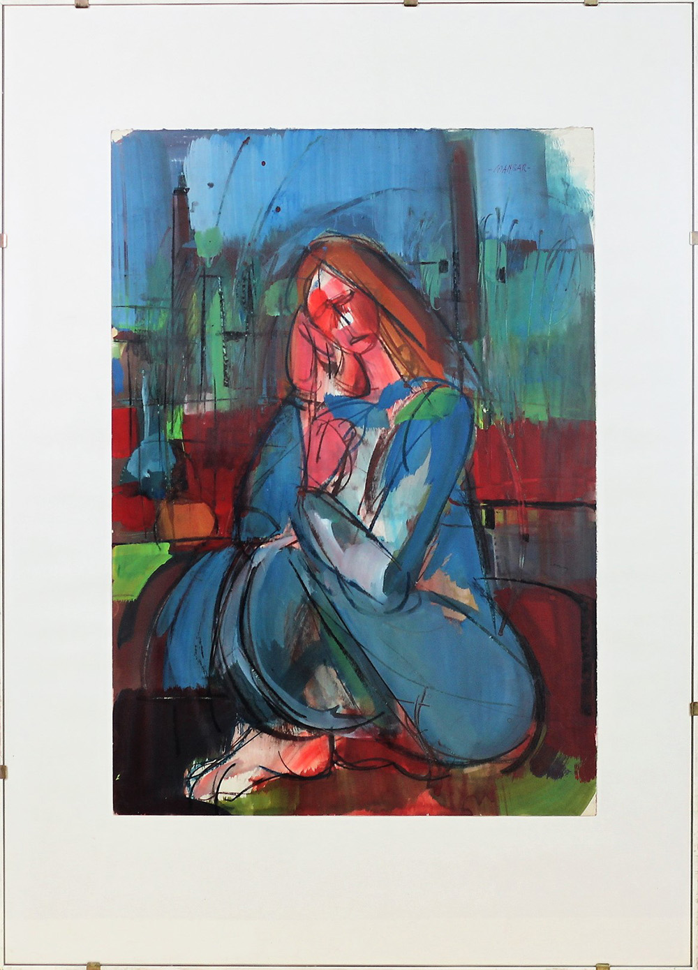 GIANBAR (TORINO 1938), Donna in blu, Tempera su carta Anno 1972 Dim. 50x35 Firmato in alto a dx