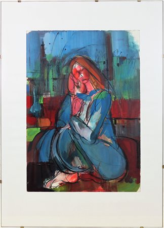 GIANBAR (TORINO 1938), Donna in blu, Tempera su carta Anno 1972 Dim. 50x35...