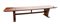 Grande tavolo rettangolare in legno di noce poggiante su due gambe in legno intagliato unite da traverse.