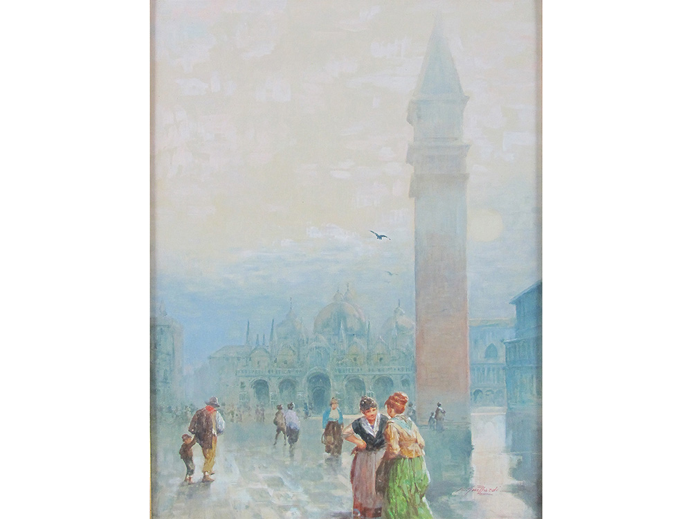 Rinaldo Guizzardi (1920) San Marco dopo la pioggia 40x30 cm Olio su tela