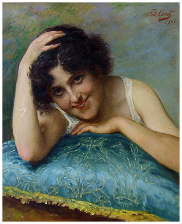 TITO CONTI Firenze 1842 – Firenze 1924 Senza titolo 1908 Olio su tela 52 x 42. Firma e data in a. a d. B.A.: A OFFERTA
