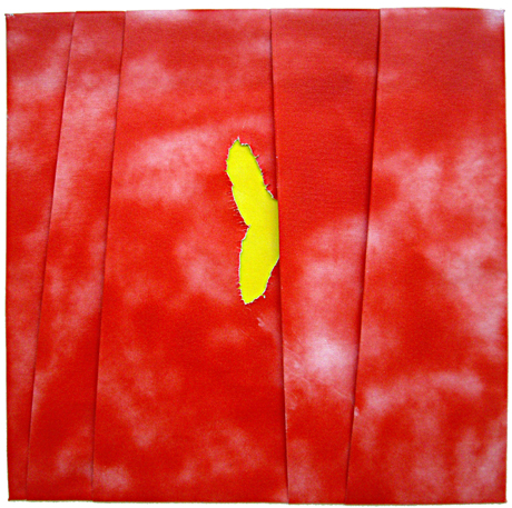 ANTONIO PAOLINO Ferrara 1972 Sole al tramonto Acrilico su tela piegata e strappata 50 x 50. Firma in b. al c.; sul verso della cornice firma, tecnica, misure e titolo. B.A.: A OFFERTA